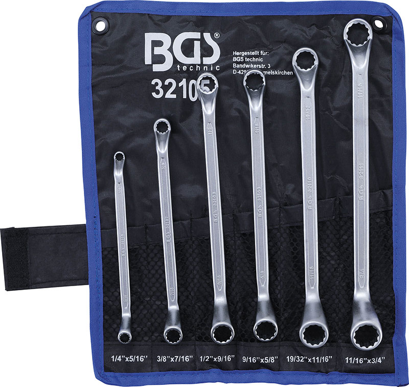 SET 6 PEZZI, CHIAVI A DOPPIO ANELLO, SFASAMENTO 75°, FORMATI SAE, 1/4”-3/4”