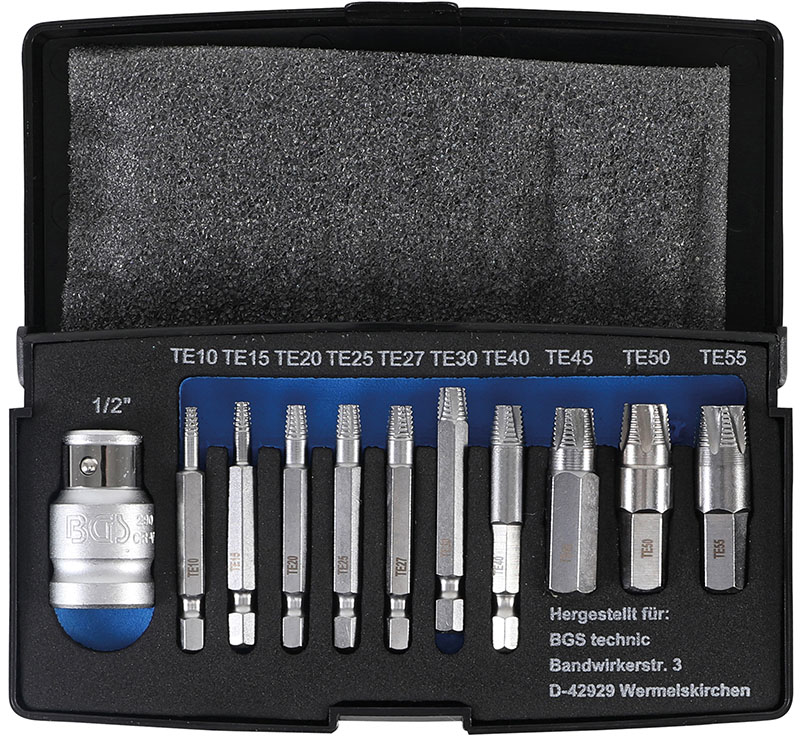 SET 11 PEZZI, ESTRATTORI PER VITI TORX DANNEGGIATE, TX10-TX55