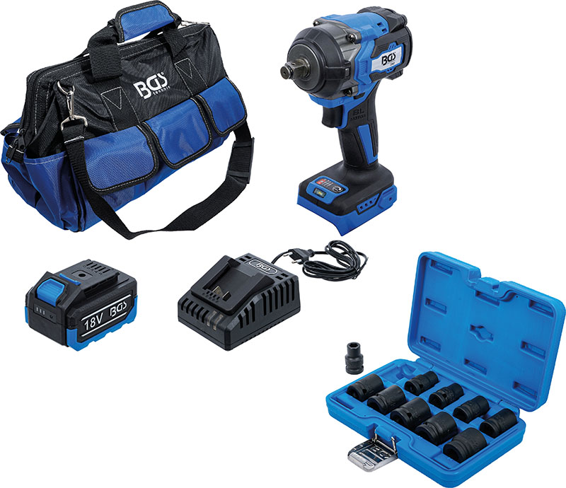 SET AVVITATORE A BATTERIA, BRUSHLESS, 400 NM, 18 V, CON BATTERIA RICARICABILE E CARICABATTERIE RAPIDO