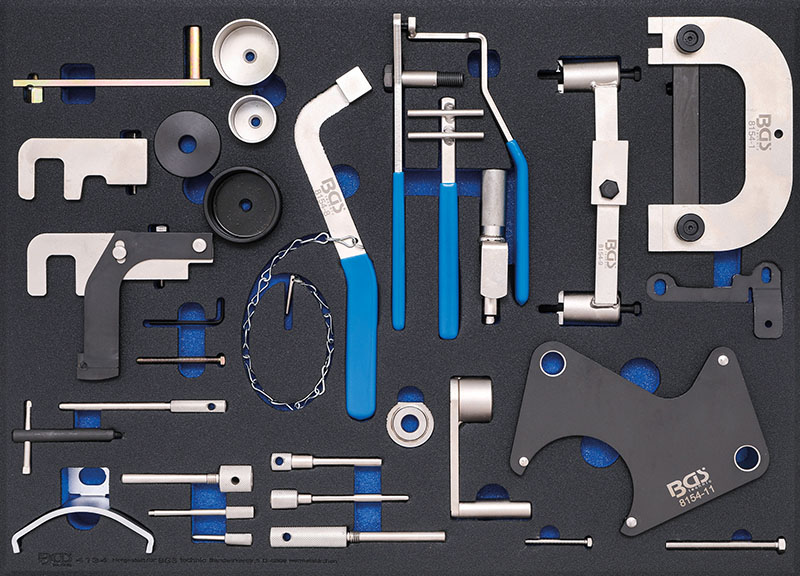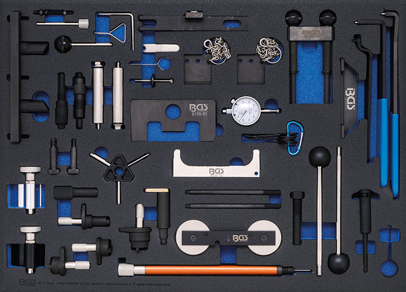 3/3 MODULO PER CARRELLO: UTENSILI PER LA MESSA IN FASE, PER FORD, VAG, MAZDA, VOLVO