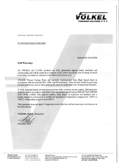 Grazie a una esperienza di oltre 100 anni nel campo della filettatura VÖLKEL si rivela uno dei leader di mercato nell’offerta di utensili per filettare.